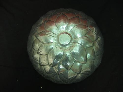 Pewter bowl is 12.5" in diameter and is a product from Bruce Fox Design.