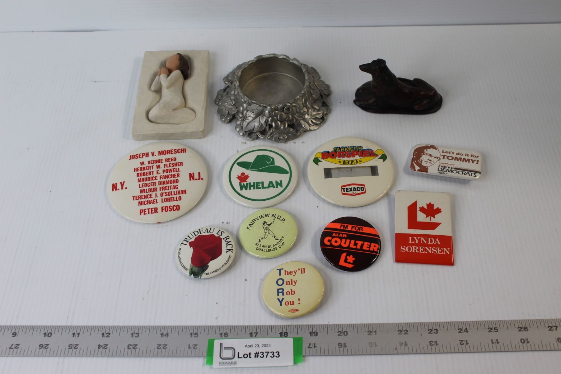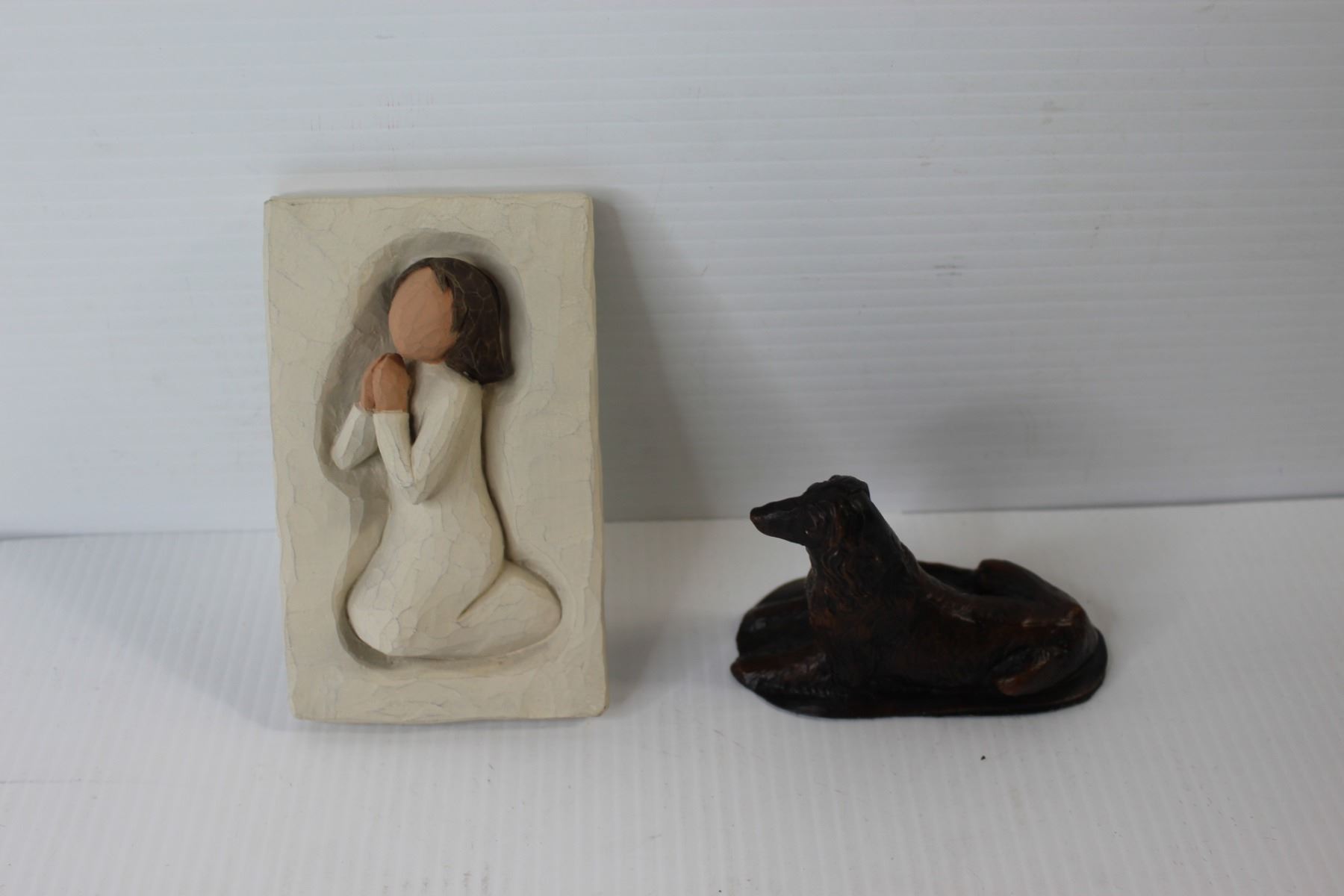 Pewter Candle Holder, Dog Figurine, Willow Tree Figurine - "Prayer"; Collector Buttons