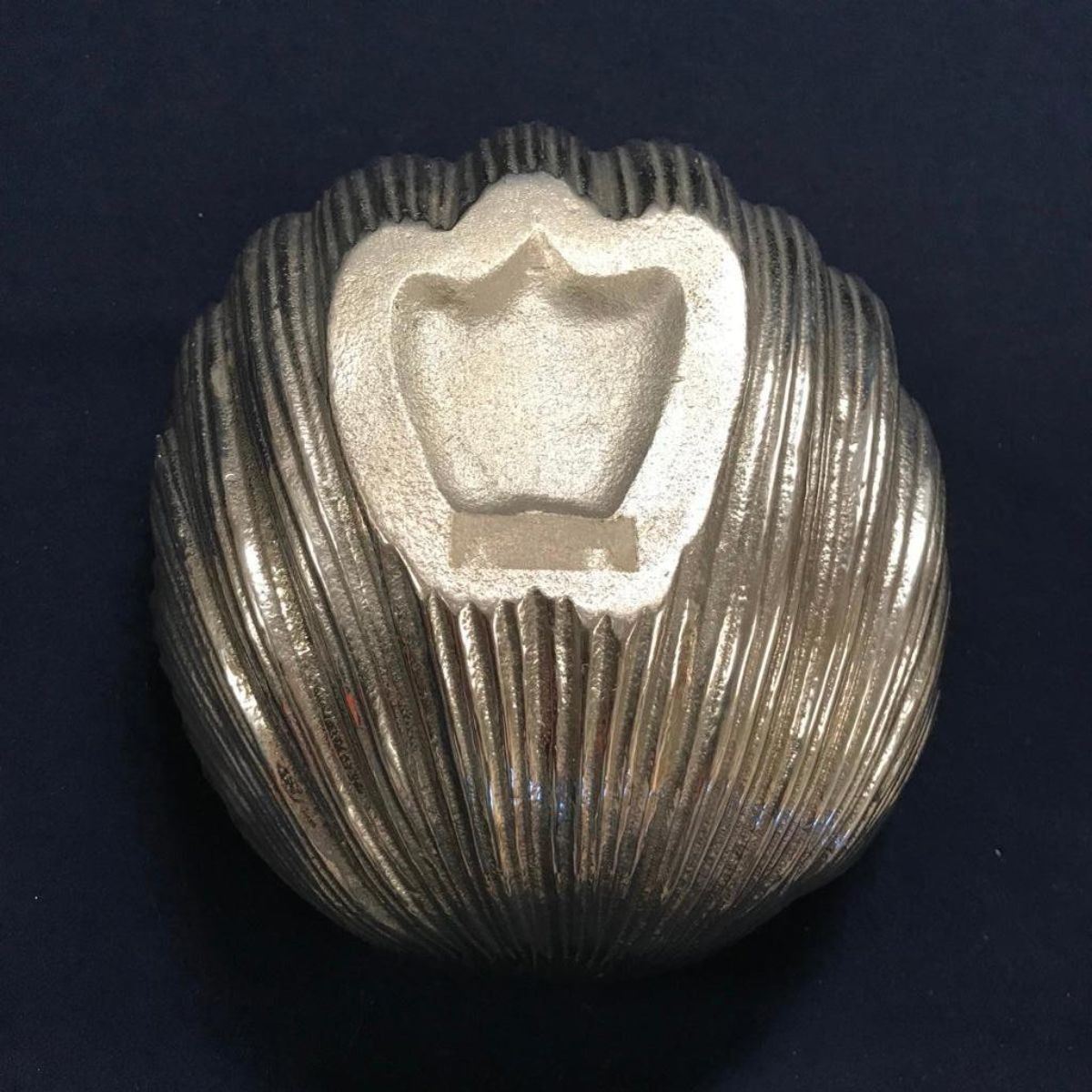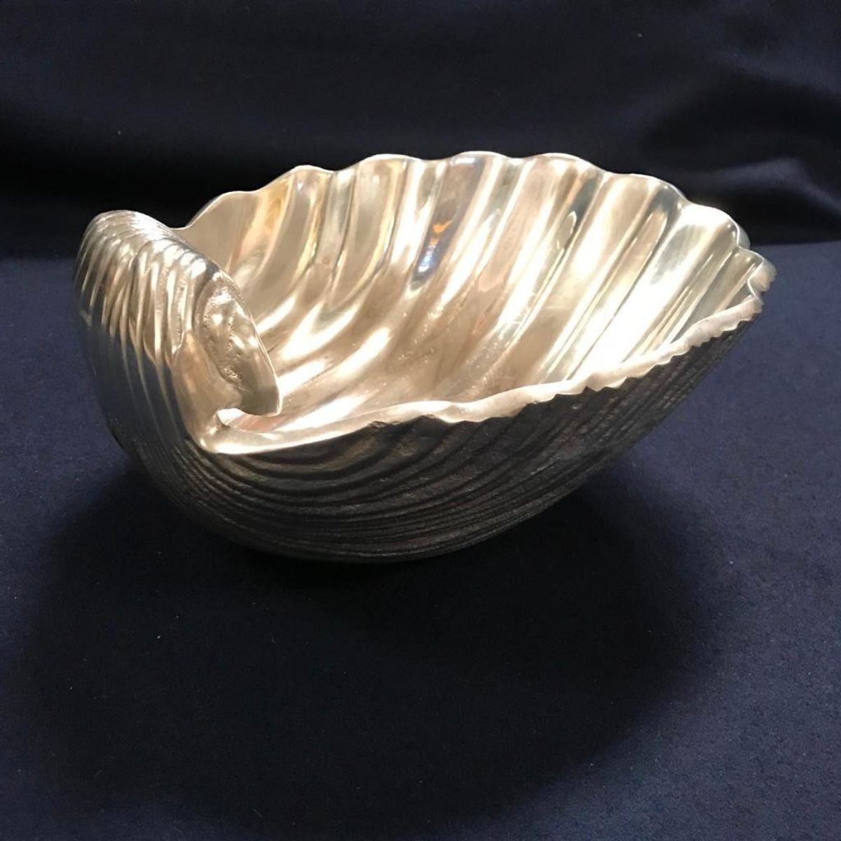 Large size, modern pewter, clam scallop shell bowl, serving dish. Used for display, in new unused condition. 7 1/2" W X 8 1/2" L X 4" H.