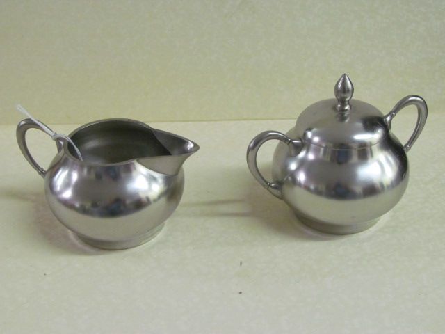 Pewter Creamer and Sugar Bowl by Metawa, Holland 94% approx 4' tall