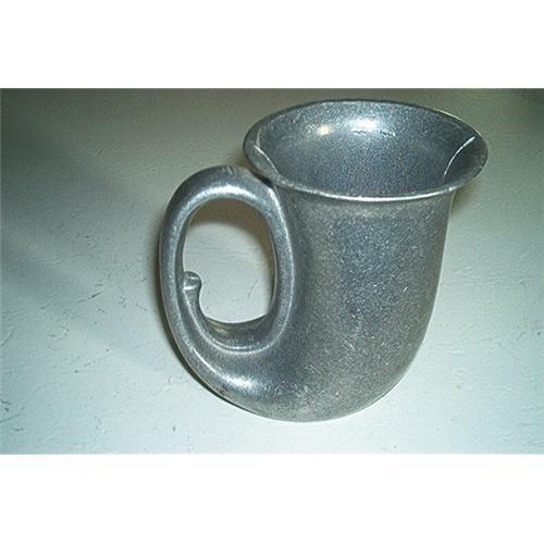 Displaying an unusal shaped Pewter cup with the tiny engraved name of: CARSON located on the inside of the cup. Large oval shaped rounded handle. Measurement are: 5 inches tall; depth measures 4 inches; base diameter measures 2 1/4 inches long by 2 inches wide. Excellent Condition.