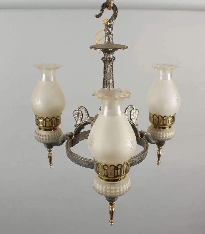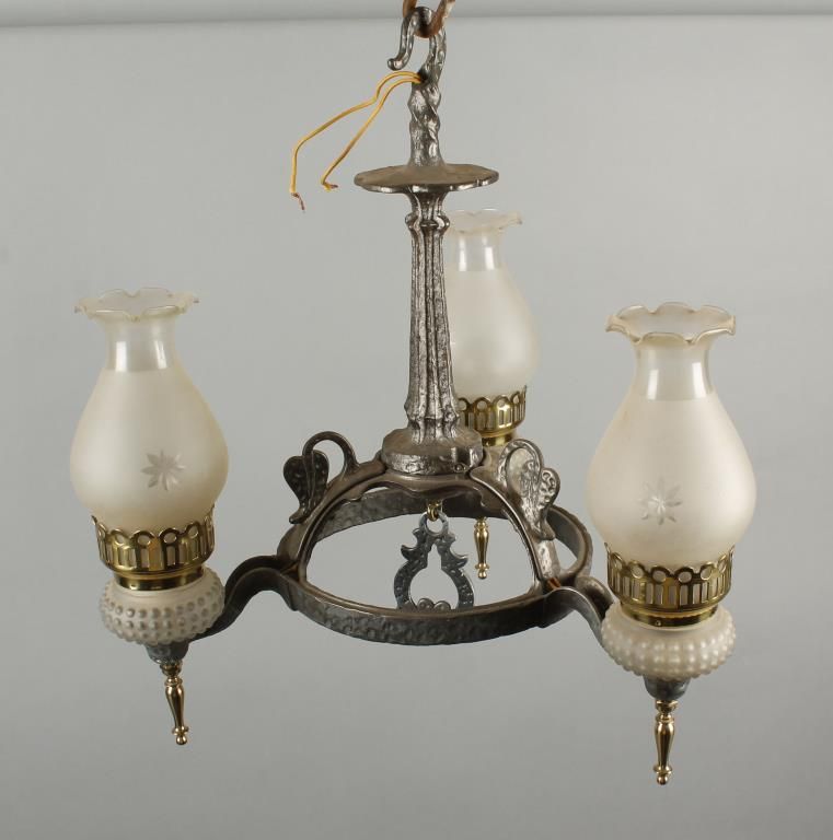 From 1940's with 3 sconces with globes which have been replaced, otherwise period.