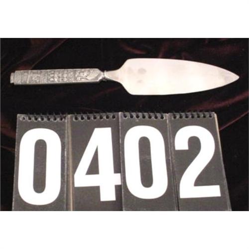 Pewter nordic pattern cake slice with vikeing designs on the handle 1-0" long very nice condition.[81]
