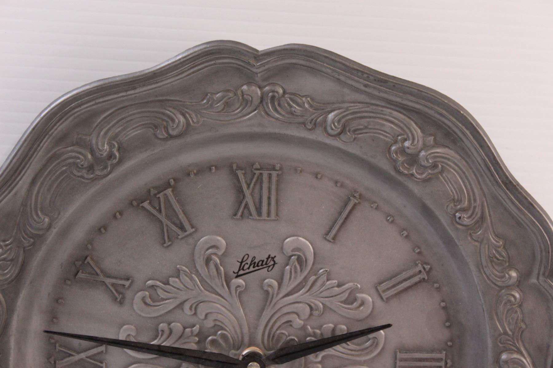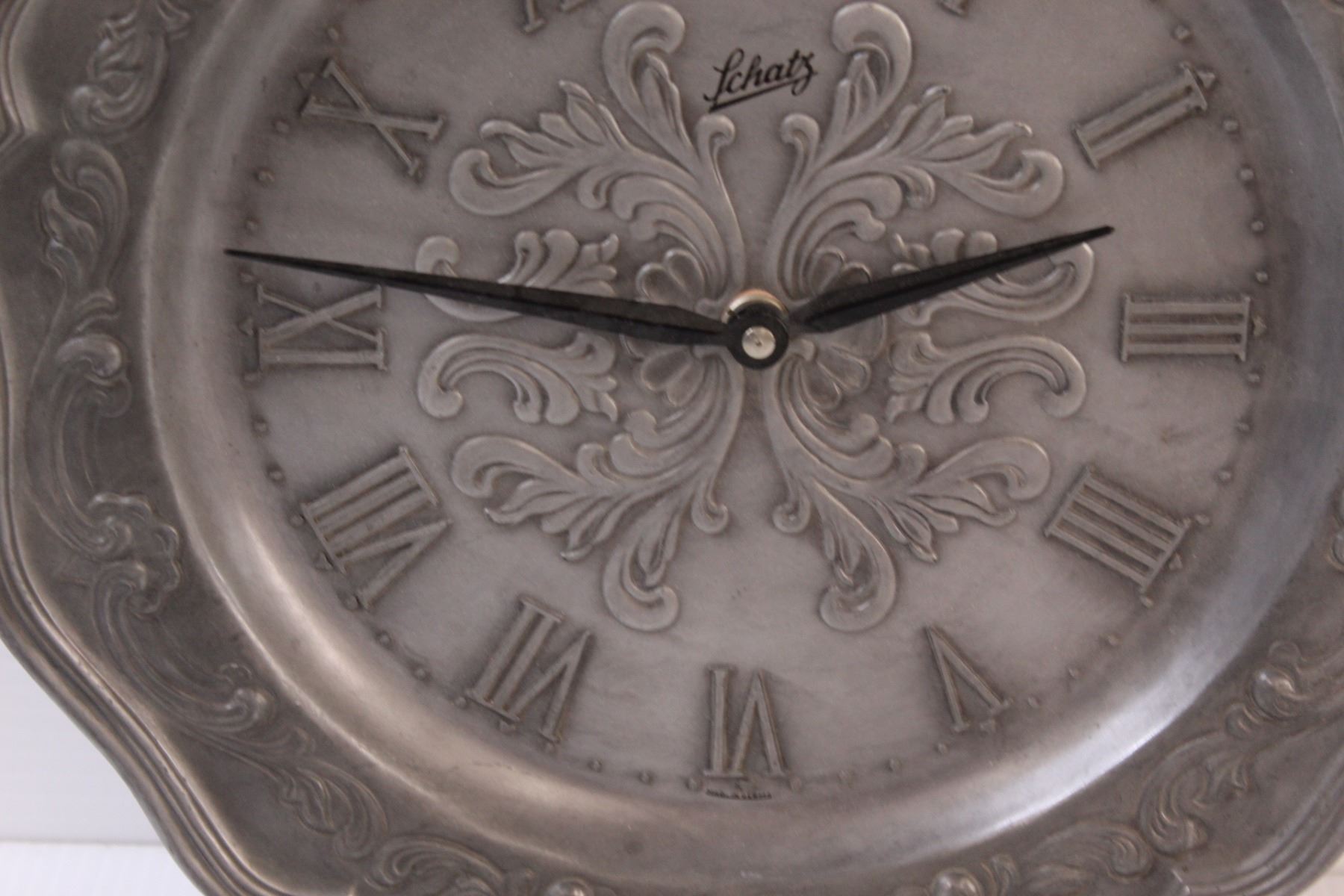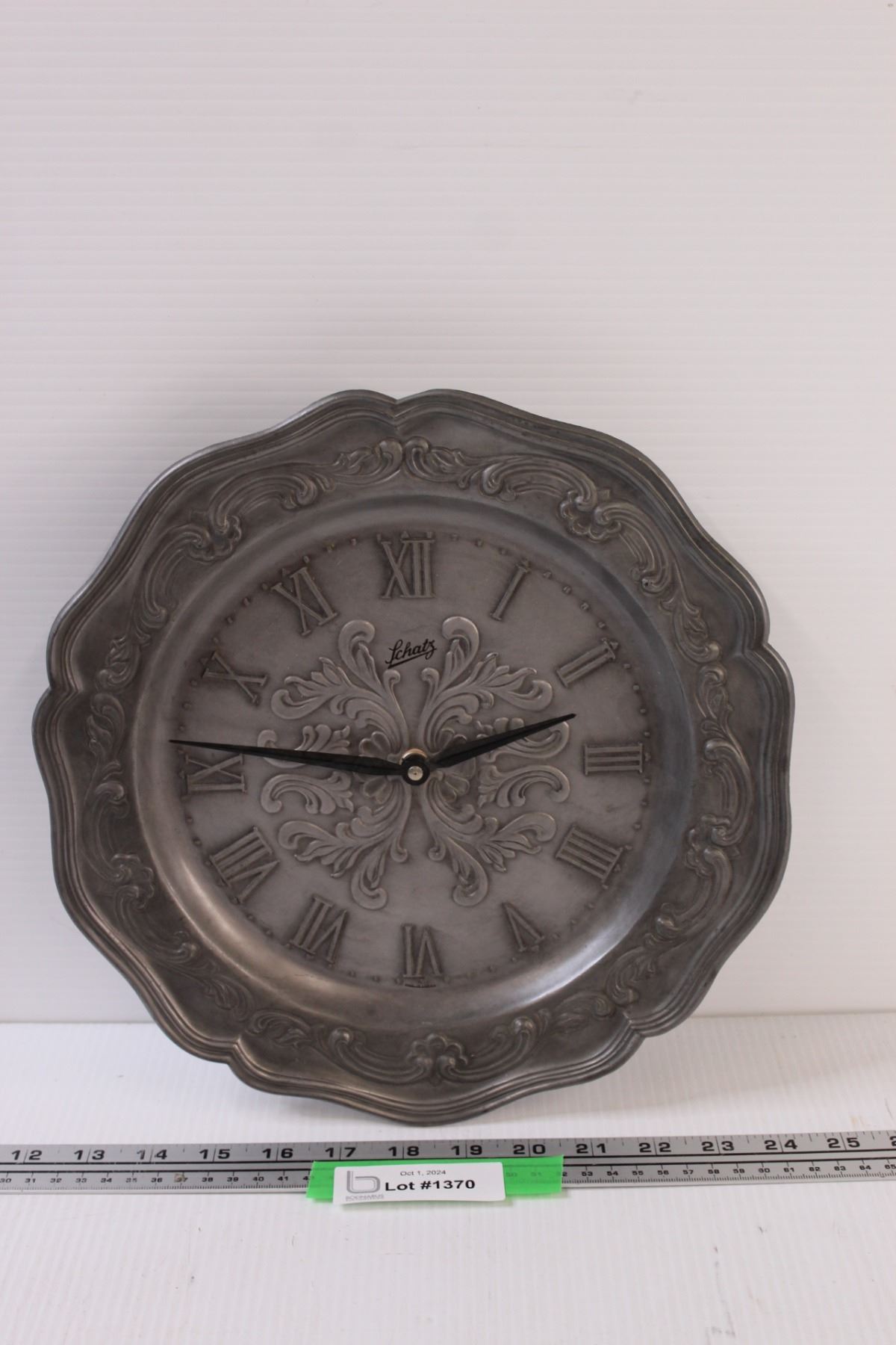 Pewter Schatz Battery Operated Wall Clock - 12" Diameter - 9V - Untested