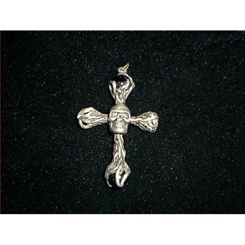 <tr><td>Title:Pewter Skull Cross with Black Marbles Signed </td></tr>