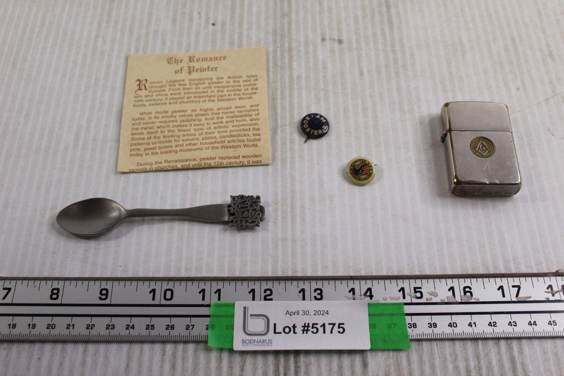 Pewter Spoon, Pins, Lighter