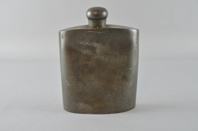 Pewter hip flask belonging to Lieut. H. Longmuir, 5th Bn Royal Scottish Fusiliers, inscribed with every place he served during WWI