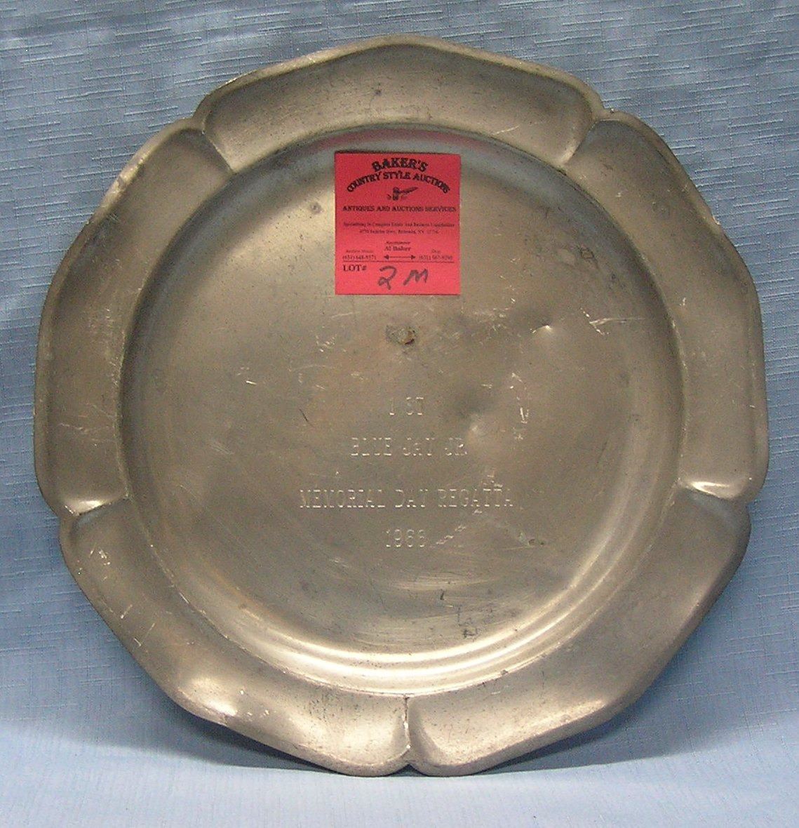 Pewter presentation award platter for first place Blue Jay memorial regatta series 1966 $75.00-$100.00
