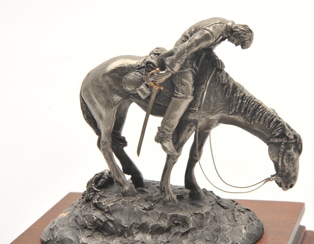 Pewter sculpture by Fran Barnum and issued by Chilmark Collectors Society entitled “Nothing Left”, #007/2500, approximately 5.5” in height including wood base with Certificate of Registration signed and datedOct. 17, 1988. Est.: $250-$500.