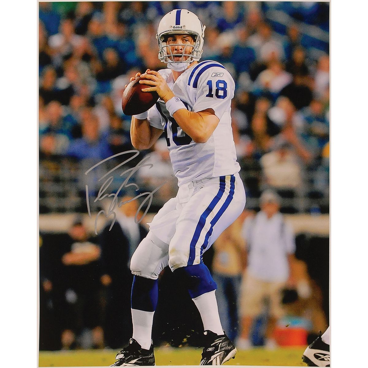 Color 16 x 20 laser print full-length photo of Manning on the field for the Colts, signed in silver ink. In fine condition, with a couple scattered light creases.