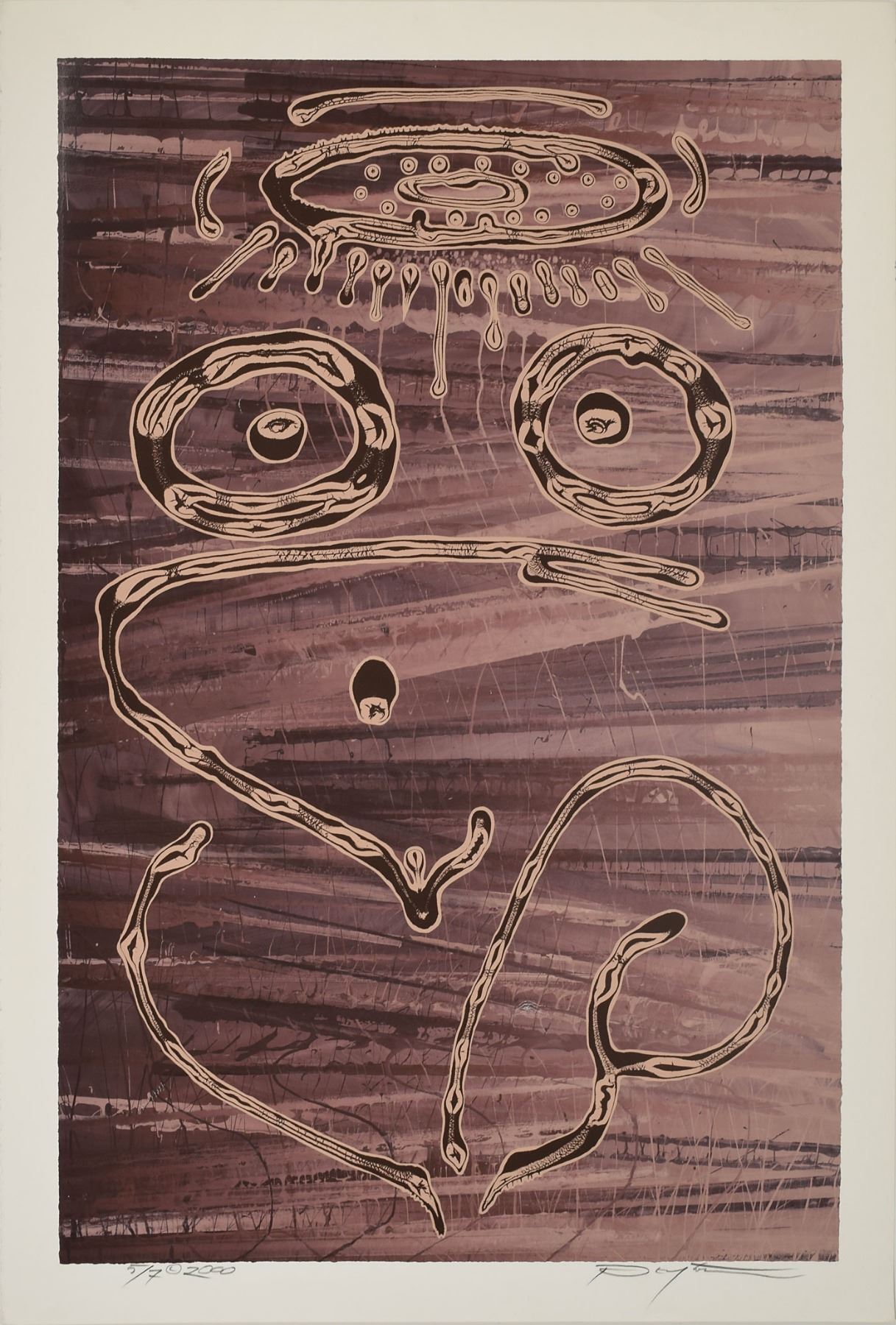 Color limited edition 30 x 44 screenprint by Peyton Scott Russell, entitled 'Brown Lady,' numbered 5/7, signed in the lower border in pencil by the artist, "Peyton," and marked with a copyright date of 2000. This brown-hued artwork represents an interpretation of the ancient 'Venus of Willendorf' figurine, a fertile voluptuous female figure. In fine condition.