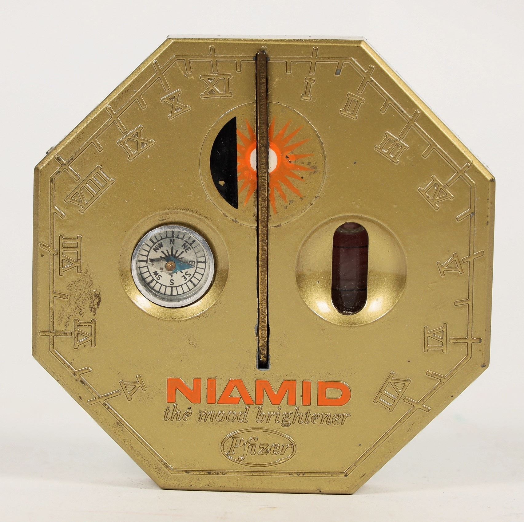 This is the Niamid model compass with sundial from Pfizer, c.1930s. Complete with box and instructions for use. In excellent condition. From the Popovich collection. Please see photo for details.