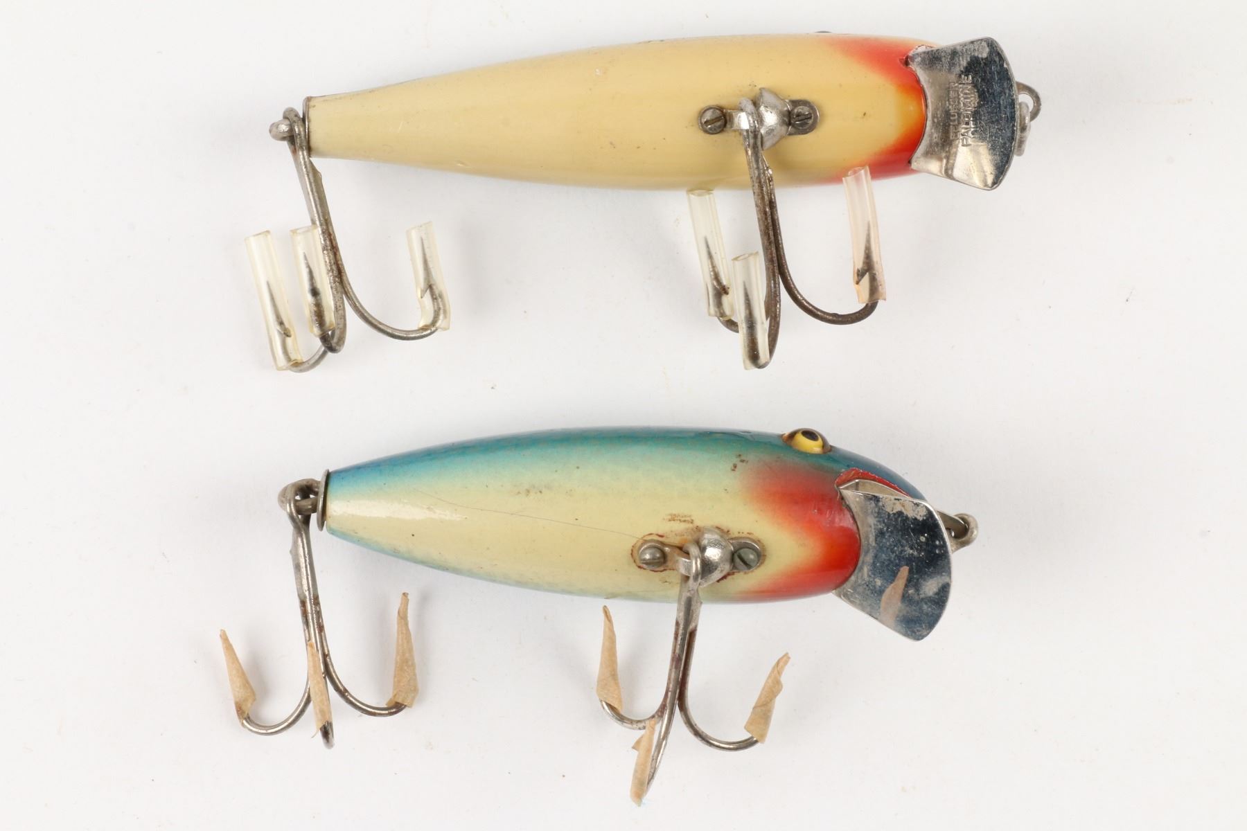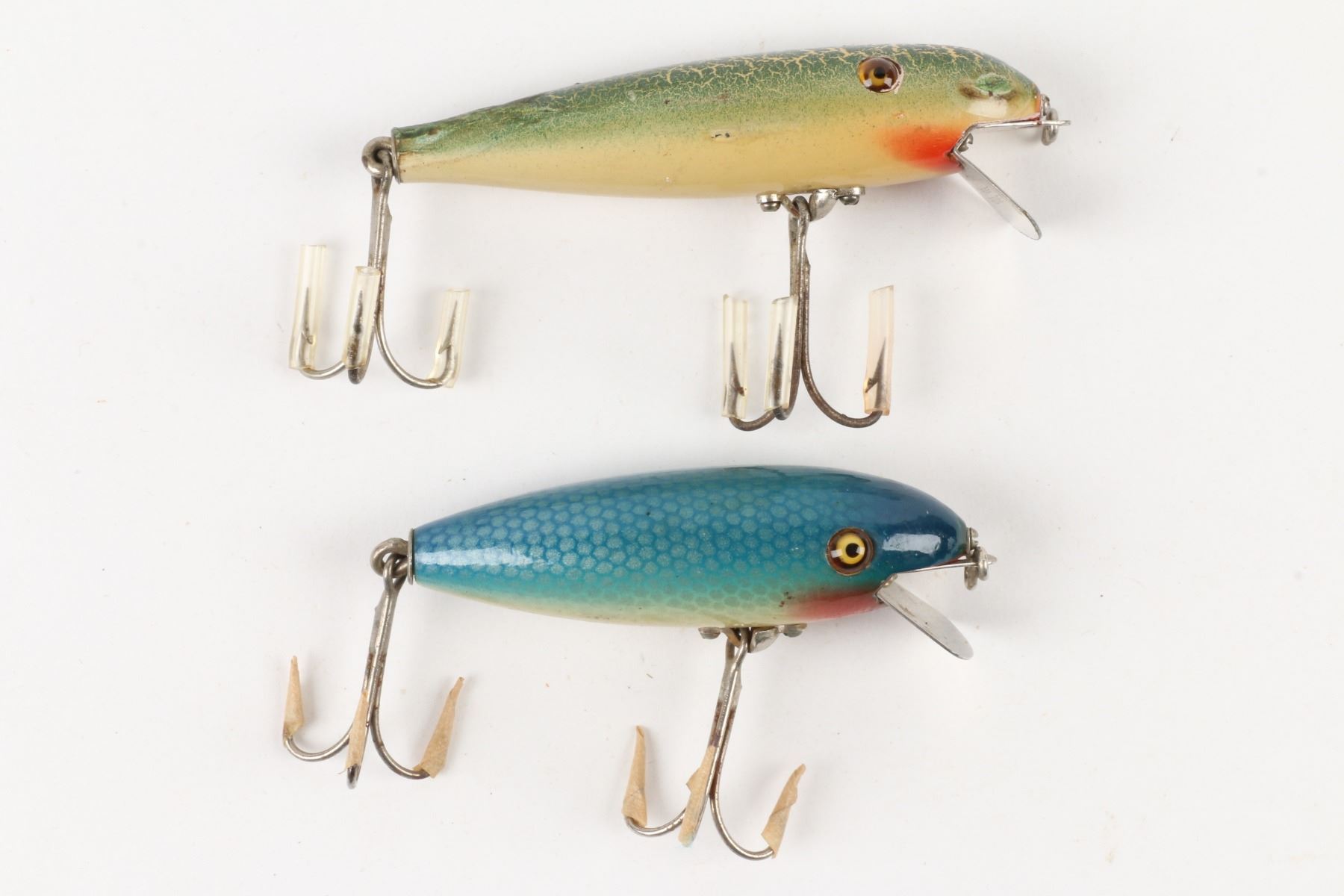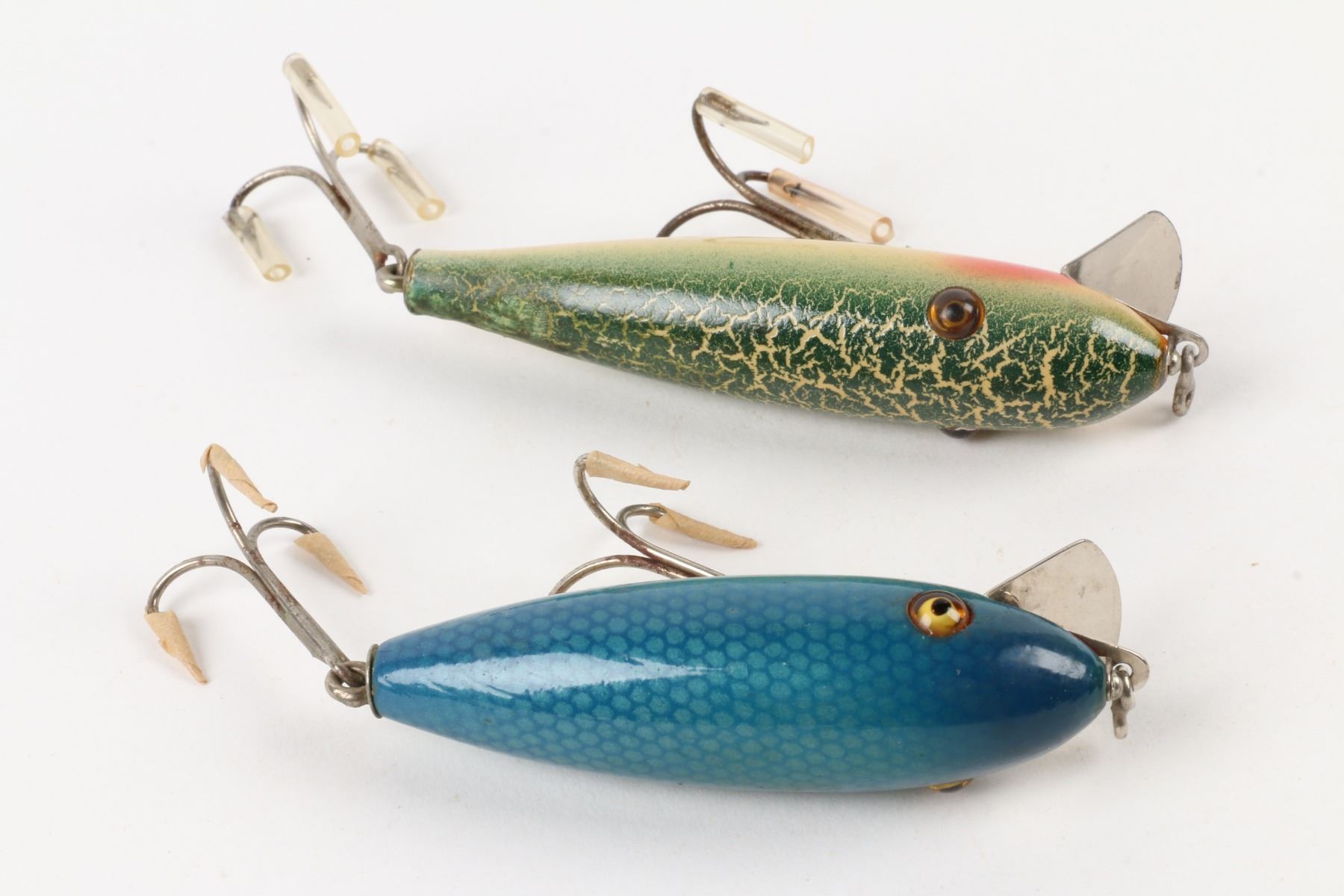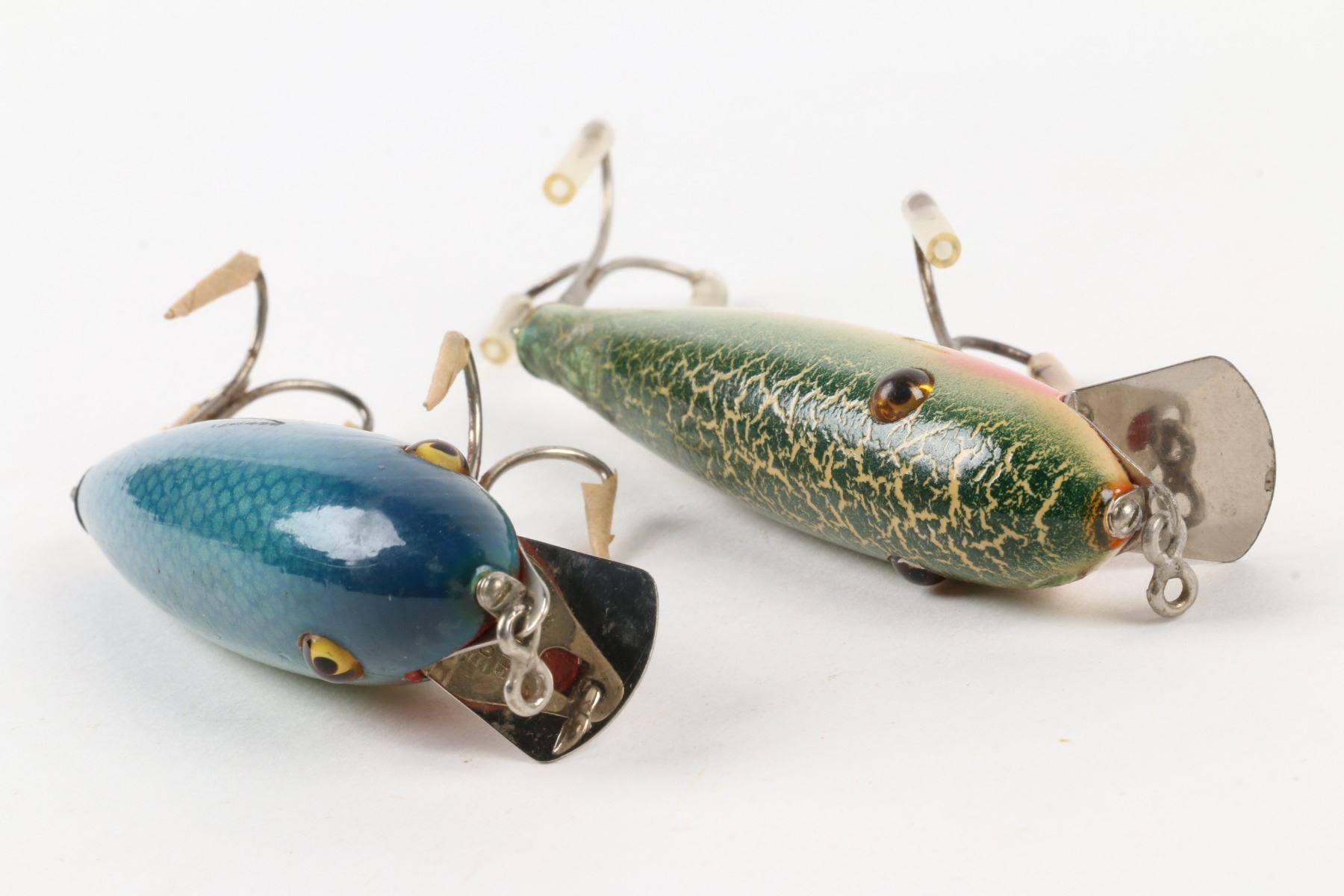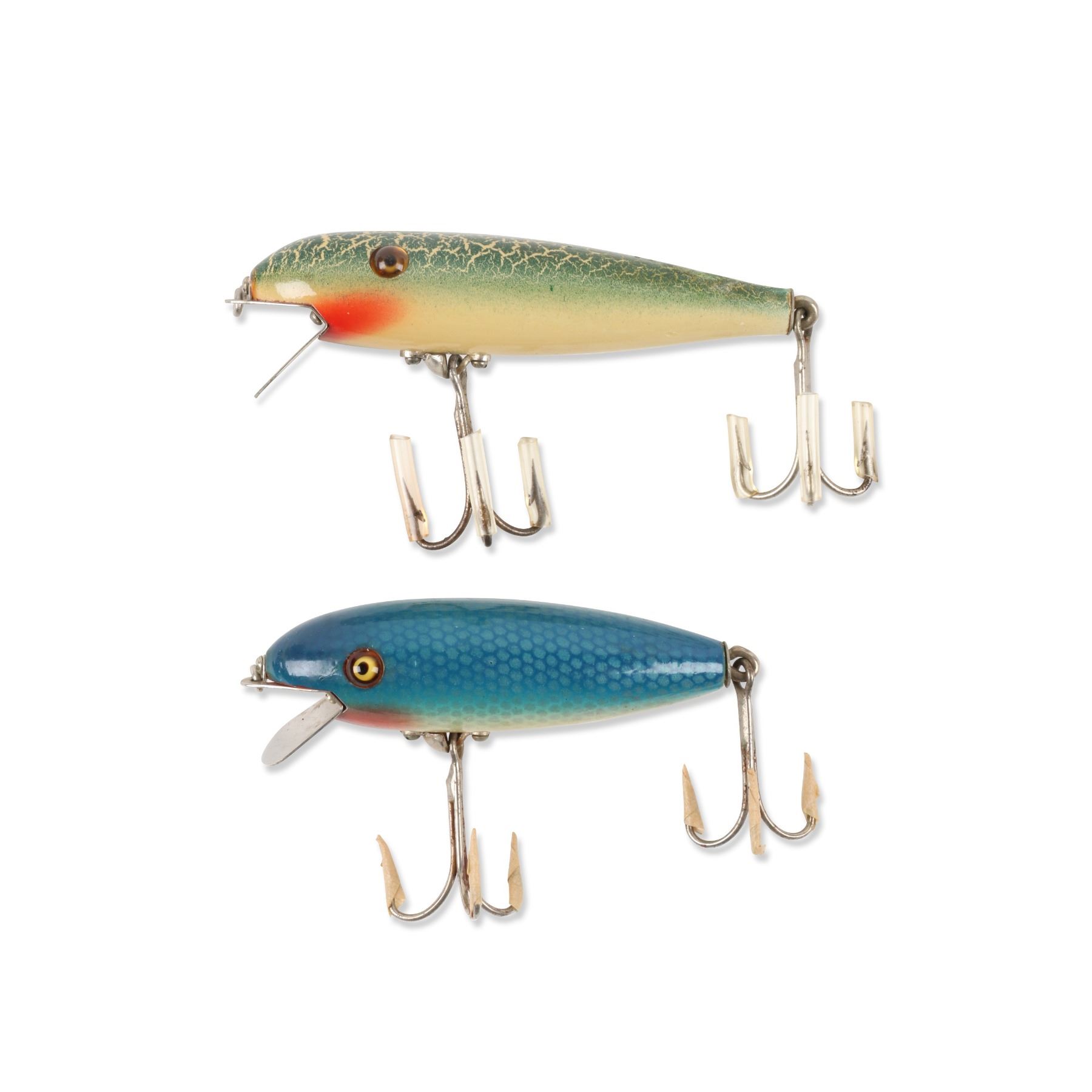 Pflueger, United States. 1940s. Material: Wood. Quantity: 2. Grade: VG+. 3" - 3.5" each. Est. $75-100.