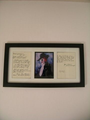 From the award winning blockbuster Broadway musical "Phantom Of The Opera", this is a large framed display with a picture of the original Phantom (Michael Crawford) and a two page prop note used on stage in the production. It is also personally signed by Mr. Crawford himself.