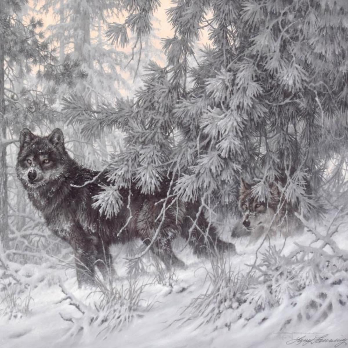 Phantom of the North - Wolf (Small) by Fanning (1938-2014). "Phantom of the North - Wolf (Small)" is a limited edition lithograph on paper by Larry Fanning (1938-2014), numbered and hand signed with a Letter of Authenticity. Measures approximately 16.5" x 9.5" (image).
