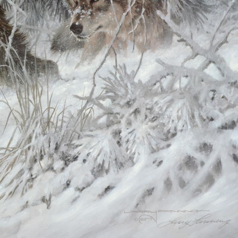"Phantom of the North - Wolf" is a limited edition lithograph on paper by Larry Fanning (1938-2014), numbered and hand signed with a Letter of Authenticity. Measures approximately 32.5" x 19.5" (image).