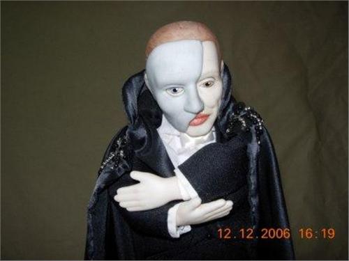 Measures approximately 18.5" tall and the base measures approximately 5.5" wide. Under the base there is writing which indicates that the doll is crafted in porcelin bisque and plays the tun "The music of the night." It also indicates that there are only 2,500 pieces worldwide and that this particular item is numbered 1868.