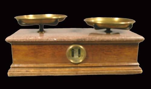 Pharmacy Scale with Marble Top. Henry Trommer, Philadelphia, Pa. 19x7x9. Brass Pans. Excellent Condition.