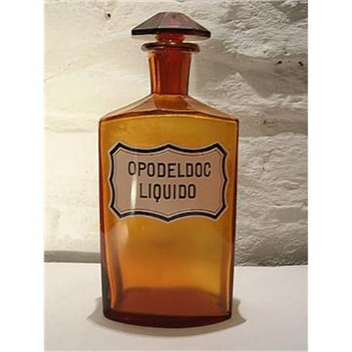 Pharmacy?s small bottle. In very good conditions. It?s says ?Opodeldoc Liquido?, besides the name is in spanish, it?s from Germany (probably). It?s made in crystal.