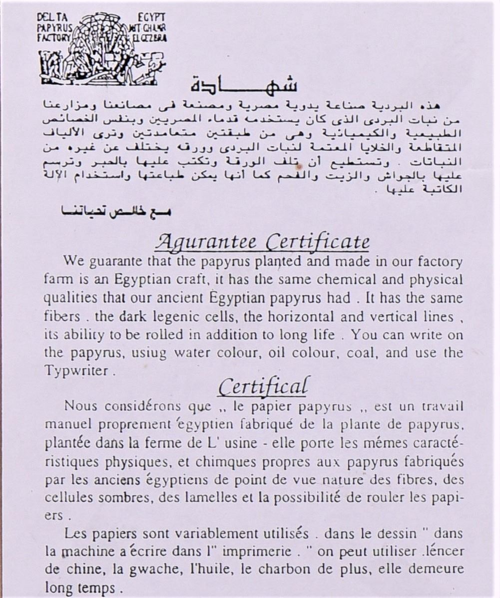 "Pharoah Archery" Egyptian Papyrus With COA, Delta