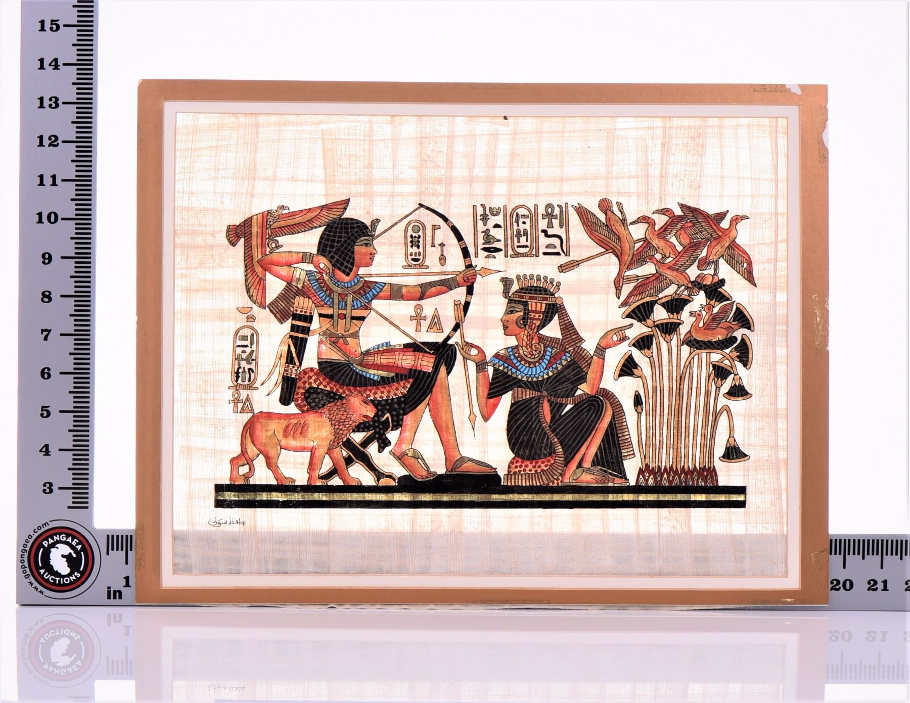 "Pharoah Archery" Egyptian Papyrus With COA, Delta Papyrus Factory. Estimated less than 50 yrs. old. Size and/or Weight: See Measurement Photo. (Photos Represent The Lot Condition, Pangaea Auctions)