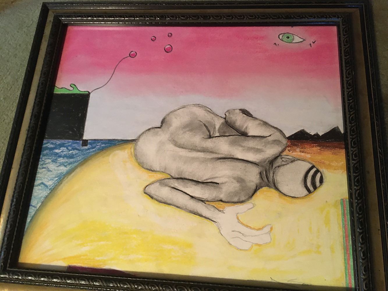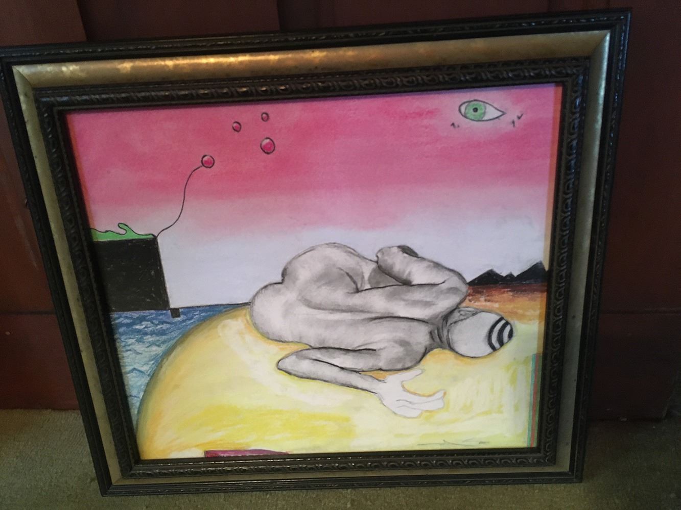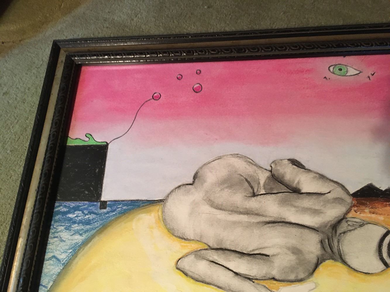 Framed pastel, Pharoahs Dream, by David Szydlowski, measures approx. 13 inches tall x 15 inches wide.A Farmington Valley, CT native, David Szdlowski came alive on the art scene in the late 1990-2000 with showings in the Farmington Valley, CT area and the Wadsworth Atheneum, he also had a gallery in New York City. A modern artist who was known for his prolific work in a style celebrated as Cerebral Art. He seems to have left the art world behind in the early 2000's, as there is no record of his work dating past 2002. A very limited number of his works can now be found on the marketplace, and this piece is from a private collection of Peter DeLeone. Originally sold for $1,200. pd estate
