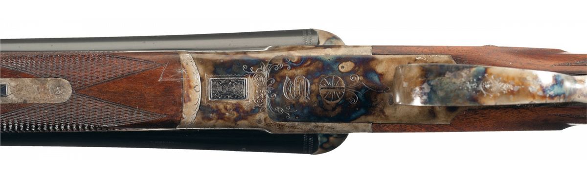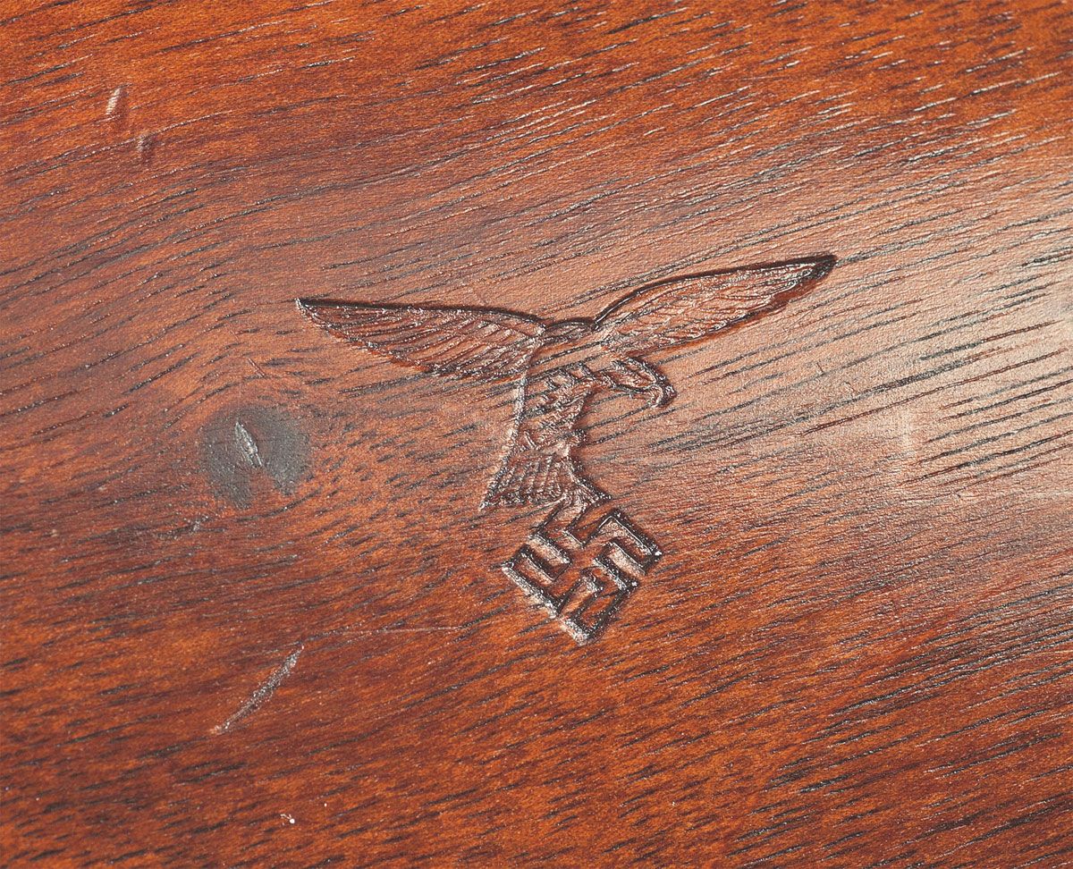 Condition: Exceptional all original condition with 98% plus of the original blue finish overall. The gun shows very minor wear on the edges and high spots overall with a couple of very minor old dark surface rust areas on both sides of the shotgun barrels from sitting in the case.The various color case hardened parts all retain 98% of their vivid original case colors, just starting to show some lacquer missing on the lower edges of the receiver and the rear of the tang. The stock and forend are excellent with only a few minor handling marks with a very deep and prominent Luftwaffe Eagle on the right side. The case and various accessories are all excellent plus with 90% of the original Luftwaffe blue/gray paint on the outside of the metal case. Just an exceptional, high condition Luftwaffe M30 Drilling rifle with the most accessories we ever offered at auction.