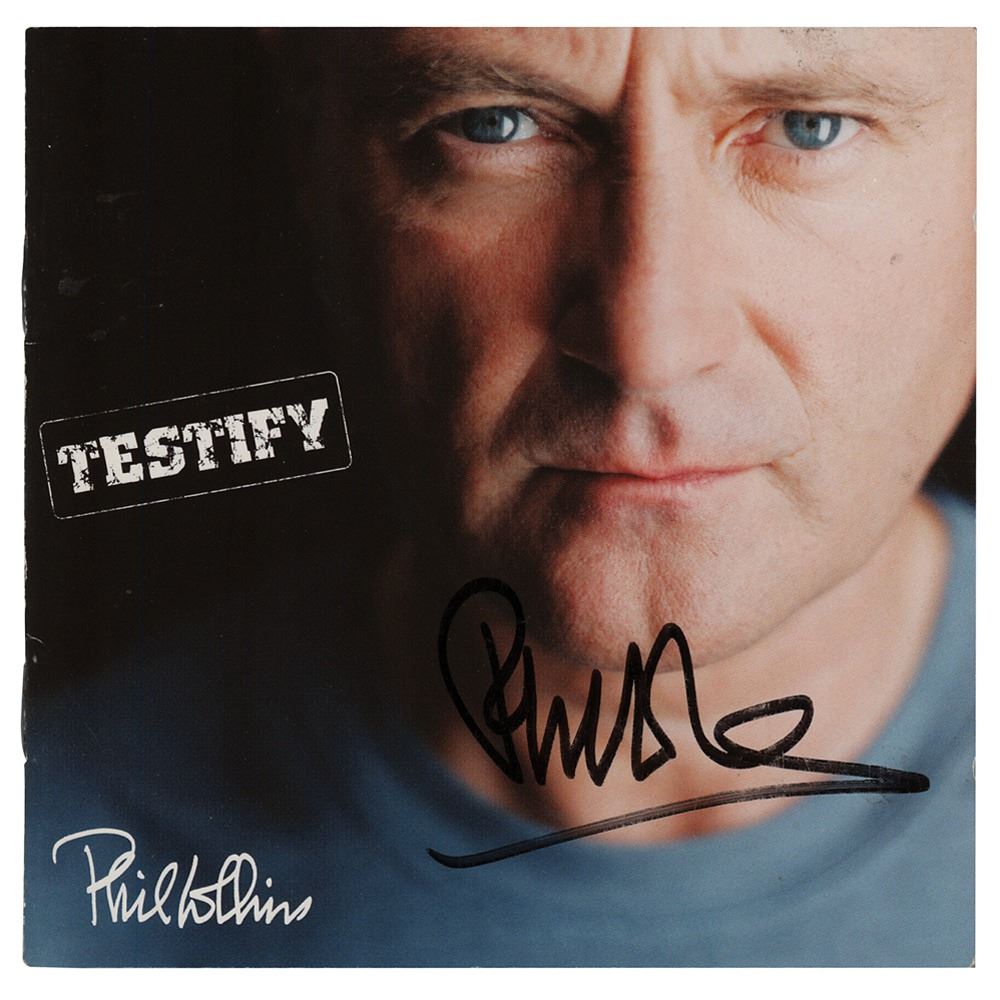 CD booklet for the album Testify by Phil Collins, who has signed on the front in black felt tip. In fine condition. The CD is not included. Accompanied by a certificate of authenticity from Tracks.