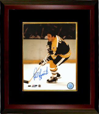 Phil Esposito is a member of the Hockey Hall of Fame, he played 18 seasons in the National Hockey League for the Chicago Black Hawks, Boston Bruins and New York Rangers. He is considered one of the best to have ever played in the NHL, and is the older brother of fellow Hall-of-Famer Tony Esposito, a goaltender. Phil Esposito has hand signed this Boston Bruins 8x10 Photo. MAB Hologram and Certificate of Authenticity from Athlon Sports. Custom Black Mat and Premium Mahogany Color Framed as shown.
