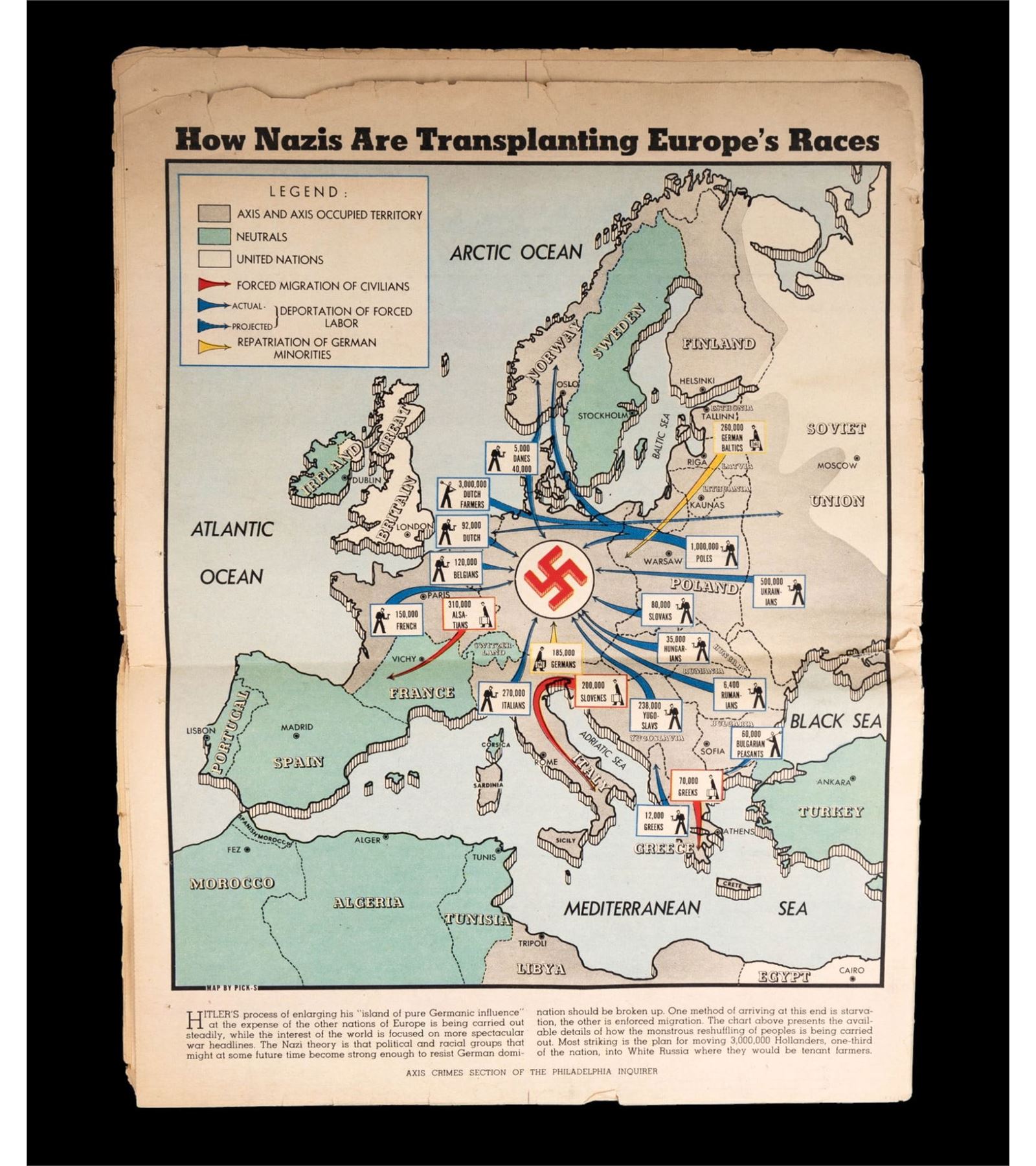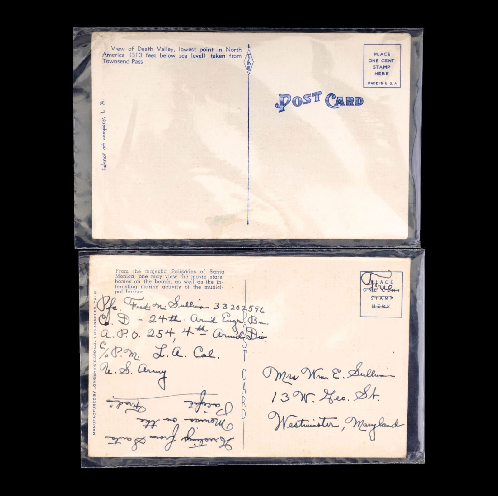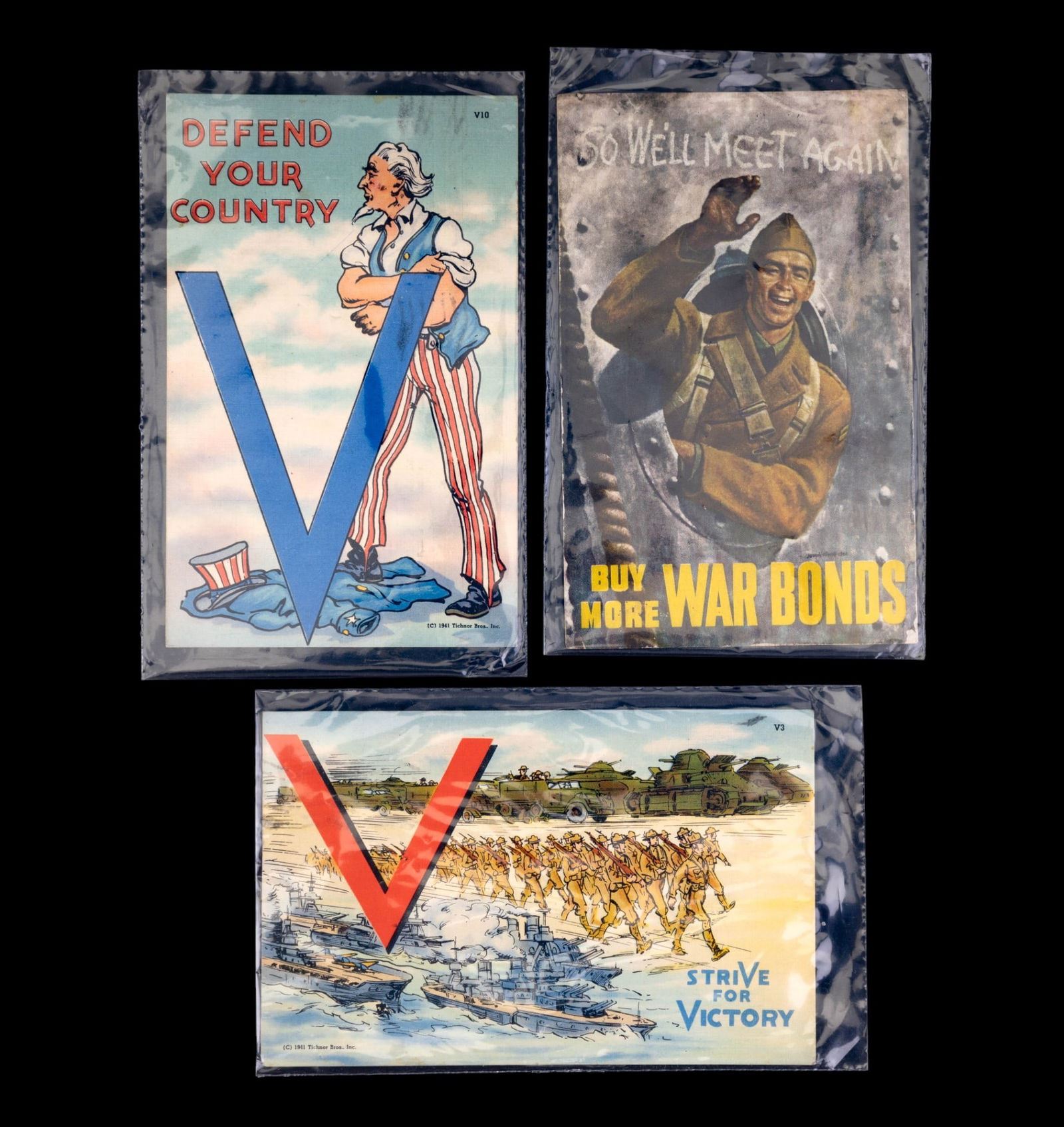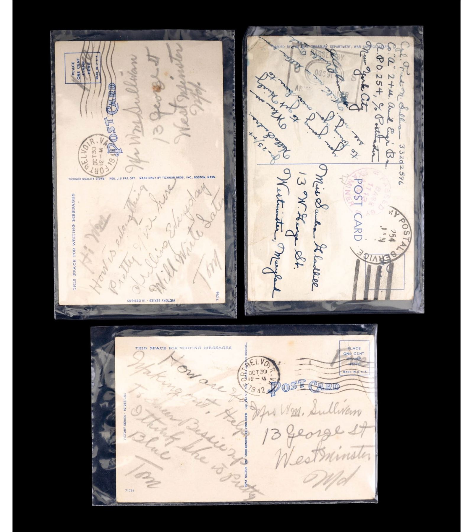Philadelphia Inquirer "Axis Crimes Don't Let Them Happen Here" Old Europe 1942 authentic newspaper section, 3 U.S. Military advertisement post cards, 22 United Service Organization U.S. Military post cards. 15 other military post cards, & 10+ more pieces of vintage ephemera. Most post cards have written notes. See photos for further details.