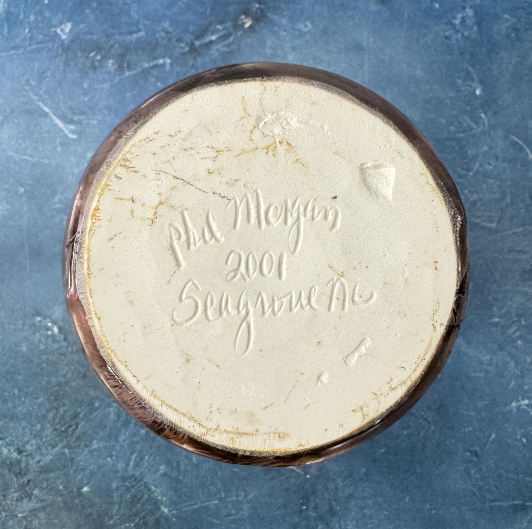 13 3/4" tall, 7 3/8" in diameter. Seagrove North Carolina.