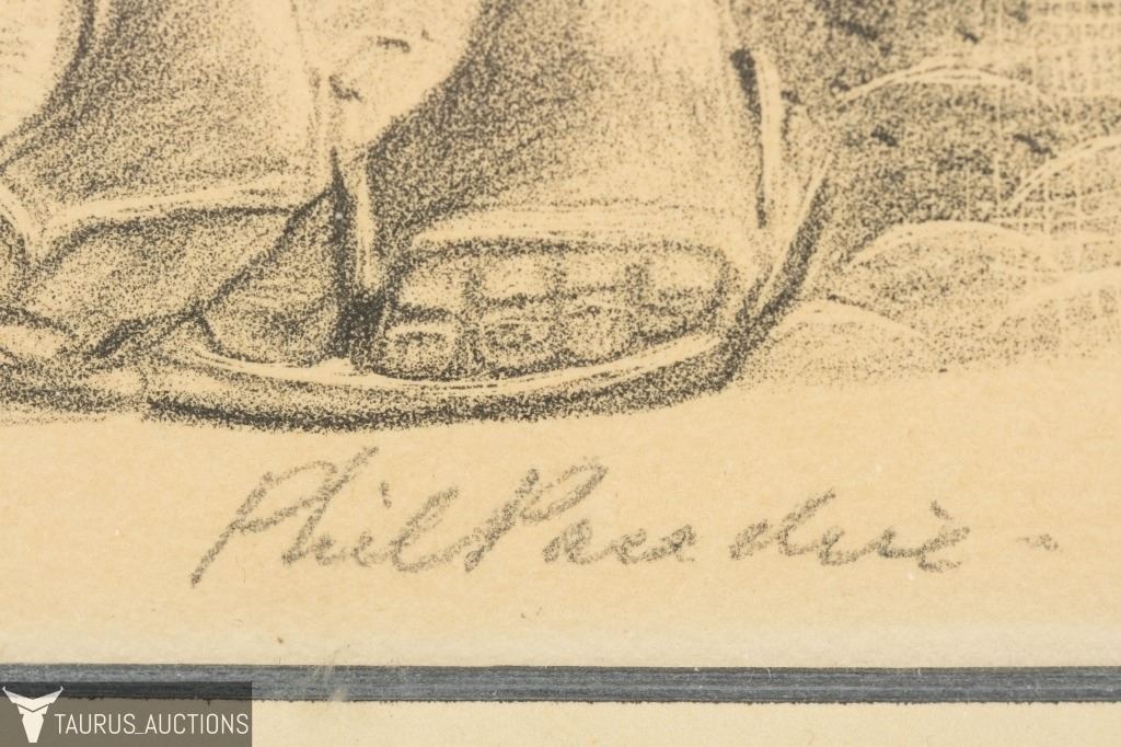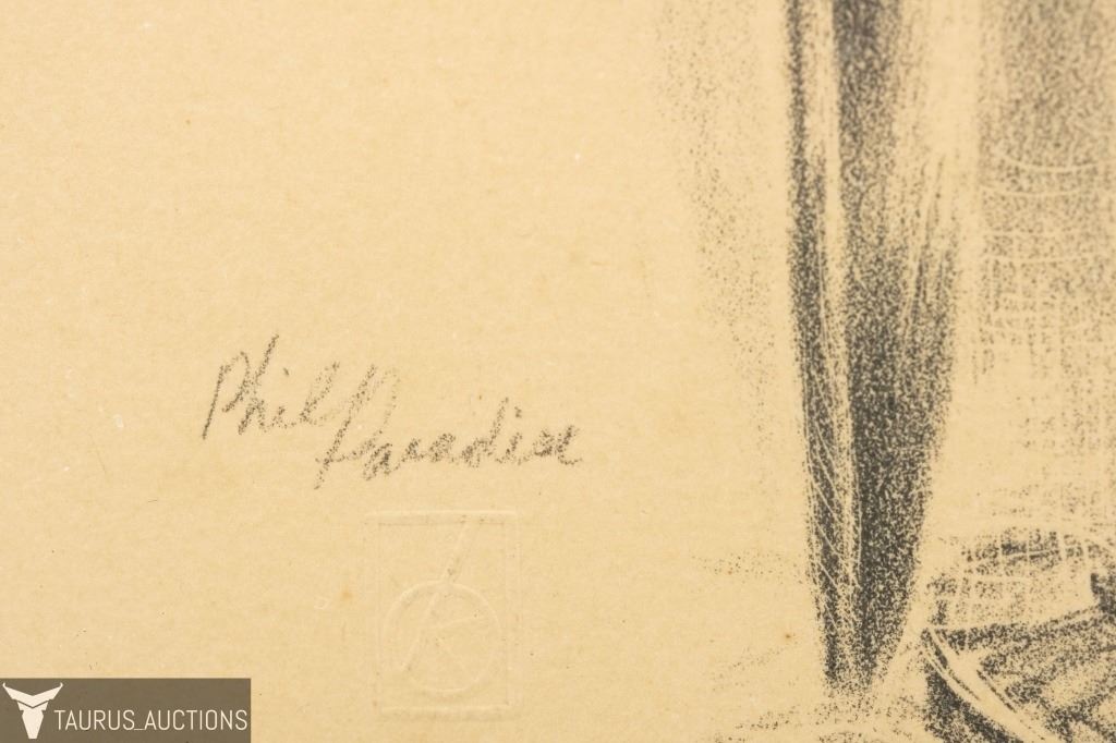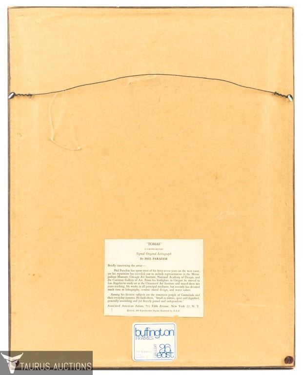 Item/Description: "Tomas" lithograph by Phil Paradise. Pencil signed by the artist, with embossed printer’s logo.