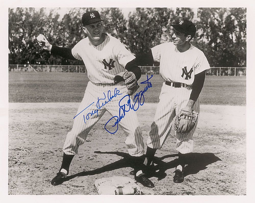 Glossy 10 x 8 photo of the Yankees infielders, signed in blue felt tip by both. In very fine condition.