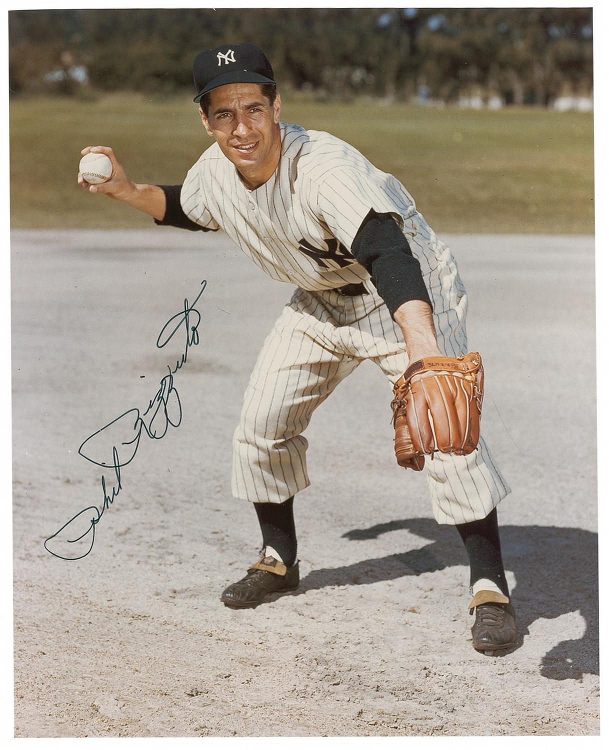 Color glossy 8 x 10 photo of ‘Scooter’ in his Yankee pinstripes, signed in black felt tip “Phil Rizzuto.” In fine condition, with a couple of insignificant surface marks.