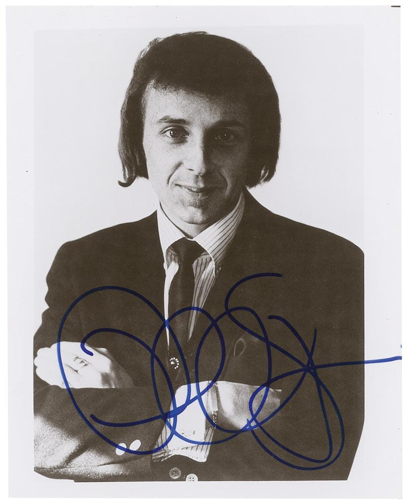 Glossy 8 x 10 photo of a young Spector in a suit and tie, signed in blue felt tip. In fine condition.