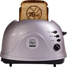Does your breakfast lack team spirit? Spice up the most important meal of the day with this Pangea Brands® ProToastTM 2-Slice toaster. The retro-style appliance leaves the mark of the Philadelphia 76ers emblem on every piece of bread. Features the 76ers logo on the outside and toasts your bread in the 76ers logo. Adjustable settings for desired toasting levels. Includes a setting for frozen breads. Works on white and wheat bread, as well as frozen waffles and English muffins. Made in China, final assembly in USA. UL tested and approved. Dimensions: 8'' H x 12'' W x 6'' D.