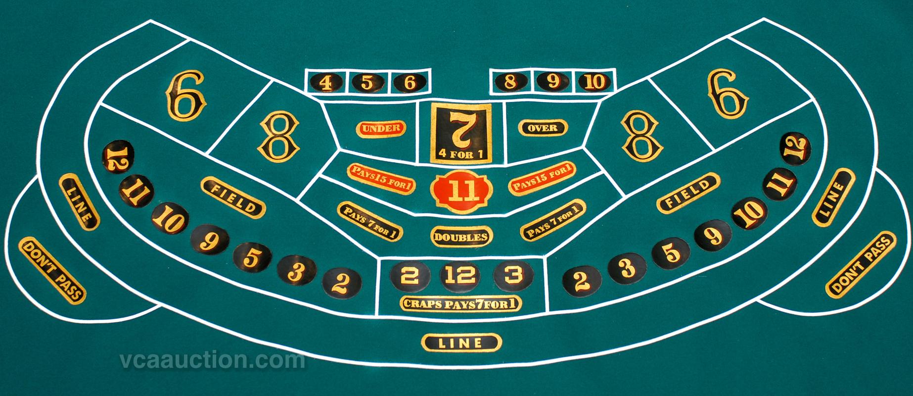 Philadelphia Craps Layout - A modern version of the most popular of all one man craps tub layouts. Vibrant colors, suitable for framing, perfect condition, measures 72" by 32".