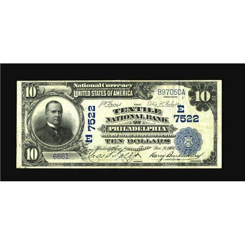 <B>Philadelphia, PA</B></I> - $10 1902 Date Back Fr. 616 <B>The Textile NB</B></I> Ch. # (E)7522<BR>A nice note bearing one of the more unusual occupational titles used here. Sharp <B>Very Fine,</B></I> with bold pen signatures.<BR><BR><b>Shipping:</b> Coin/Currency (<a target="_blank" href="http://www.heritageauctions.com/common/shipping.php">view shipping information</a>)