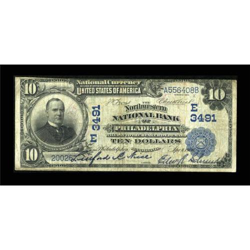 <B>Philadelphia, PA</B></I> - $10 1902 Date Back Fr. 617 <B>The Northwestern NB</B></I> Ch. # (E)3491<BR> Officers are Linford C. Nice and Edw. A. Schmidt as stamped on this <B>Fine</B></I> example from the "City of Brotherly Love."<BR><BR><b>Shipping:</b> Coins & Currency (<a target="_blank" href="http://www.heritageauctions.com/common/shipping.php">view shipping information</a>)