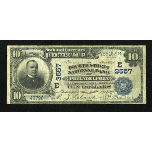 <B>Philadelphia, PA</B></I> - $10 1902 Date Back Fr. 618 <B>The Fourth Street NB</B></I> Ch. # (E)3557<BR> This $10 with snappy paper and superior edges for the grade has printed signatures. <B>Fine</B></I>.<BR><BR><b>Shipping:</b> Coins & Currency (<a target="_blank" href="http://www.heritageauctions.com/common/shipping.php">view shipping information</a>)