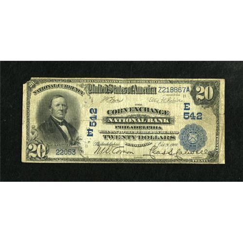 <B>Philadelphia, PA</B></I> - $20 1902 Date Back Fr. 642 <B>The Corn Exchange NB</B></I> Ch. # 542<BR> A few pinholes are noted on this boldly signed issue. <B>Fine.</B></I><BR><BR><b>Shipping:</b> Coins & Currency (<a target="_blank" href="http://www.heritageauctions.com/common/shipping.php">view shipping information</a>)