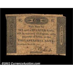 Philadelphia, PA - Philadelphia Bank 6 1/4ó Mar. 8, 1816 G42A nice fractional issue from an era when values were still commonly reckoned in terms of bits and reales. Very Good. Important notice: We expect to be auctioning lots at the rate of 200-250 per hour. Sometimes eBay Premier live bid software cannot keep up with that pace, so we strongly recommend that you place a realistic proxy bid now as insurance to avoid disappointment. Also please note that all Heritage/CAA lots purchased through eBay Premier carry a 20% Buyer's Premium. Please make sure you read the Terms and Conditions.