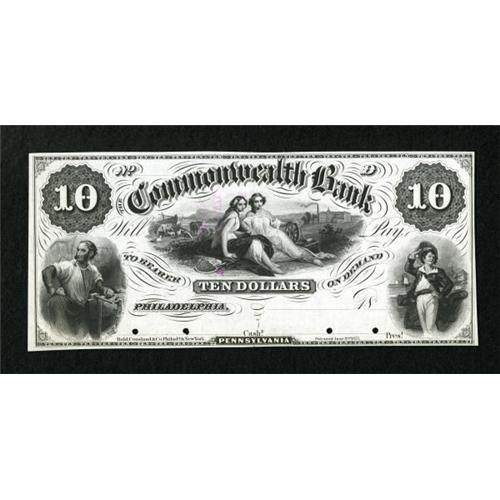 <B>Philadelphia, PA- The Commonwealth Bank</B></I> $10 18__ G10 Proof<BR> This is a nice black and white Proof, ex-ABNCo holdings. <B>Choice Crisp Uncirculated,</B></I> 4 POC. <BR><BR><b>Shipping:</b> Coins & Currency (<a target="_blank" href="http://www.heritageauctions.com/common/shipping.php">view shipping information</a>)