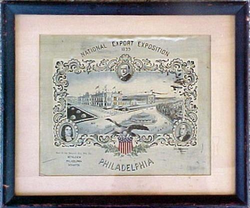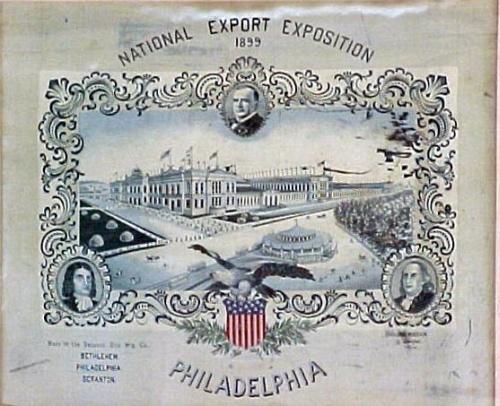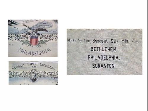 Philadelphia silk weaving depicting The National Export Exposition; made by Sauguolt Silk Mfg. Co.; image measures 10 1/2" x 12 3/4" (slight discoloration around border)