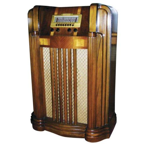 Philco Floor Model Radio. Inlaid Wood Cabinet. Good Working Condition. 28 X 41 1/2 X 13 1/2 inches.