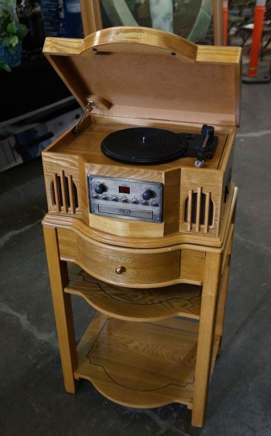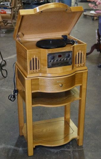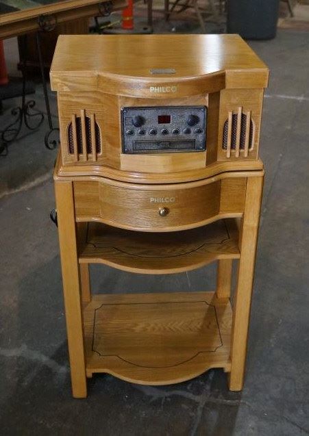 Philco Record and CD Player With 1 Drawer Stand In Working Condition Approx. 35 x 18 x 15