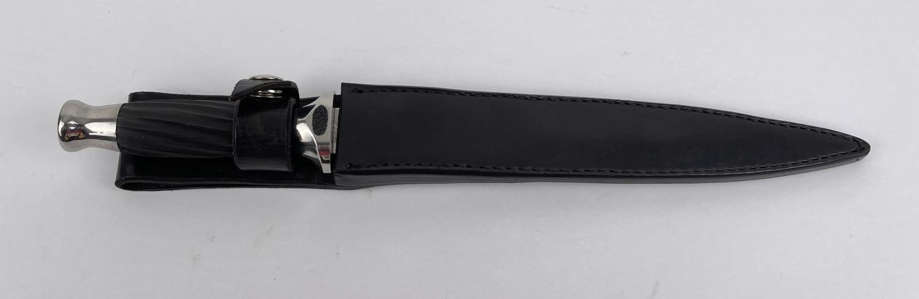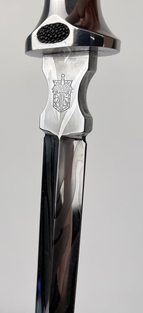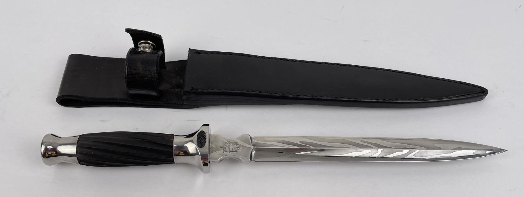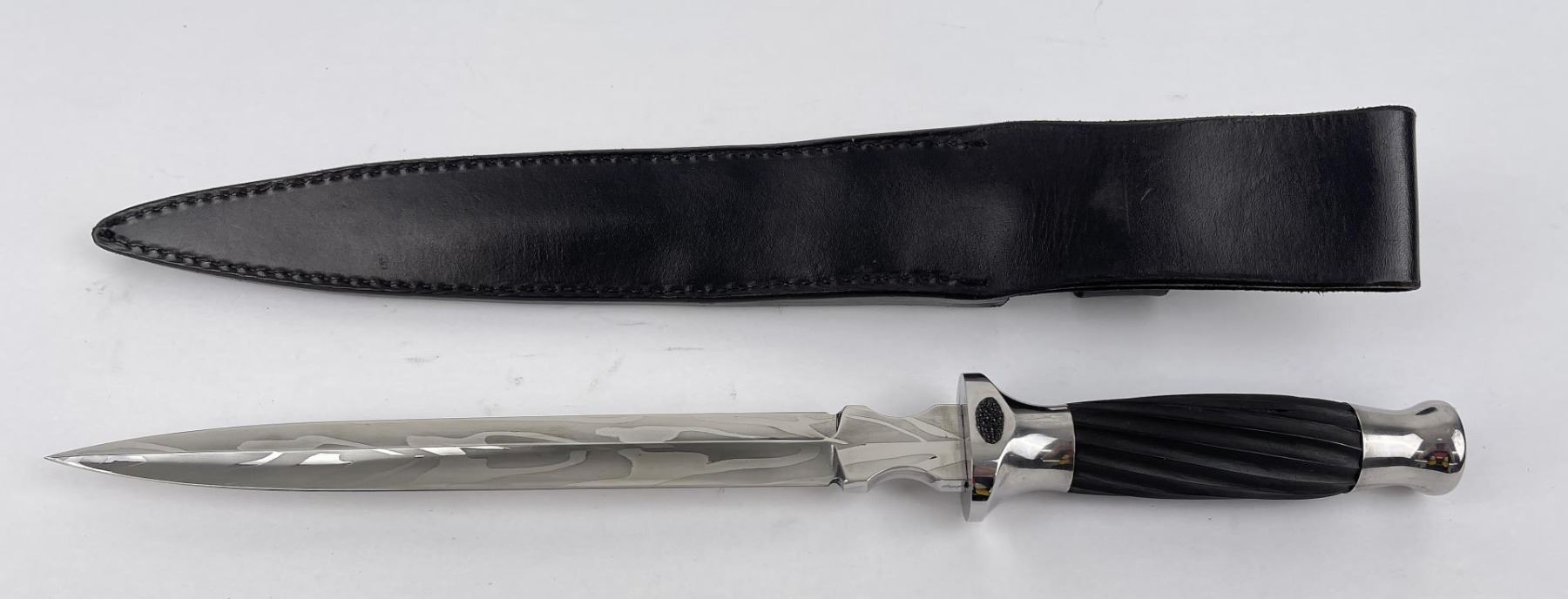 Beautiful dagger. Blade is Damascus steel. Carved wood handle. Ray skin thumb rest. Never used. A masterpiece. 13.5" long overall.