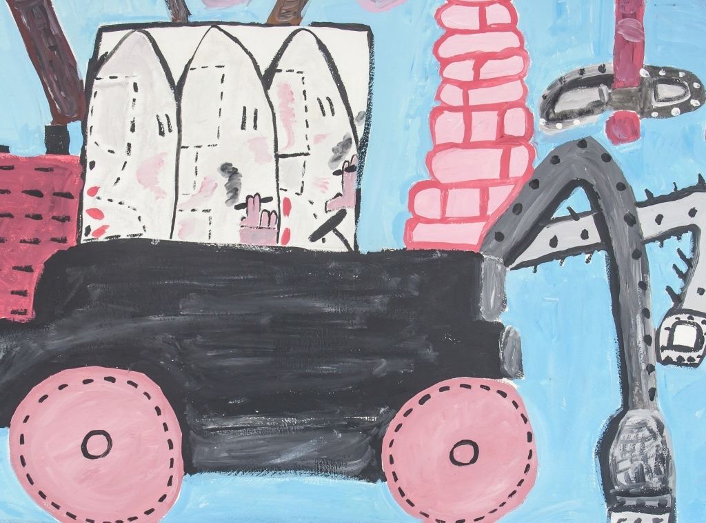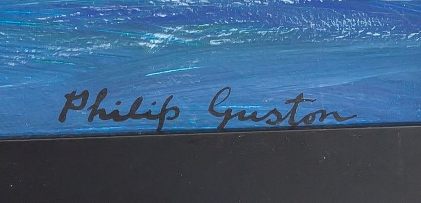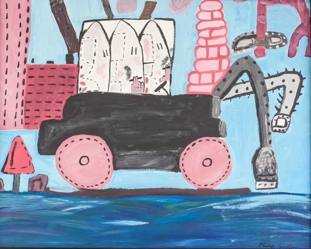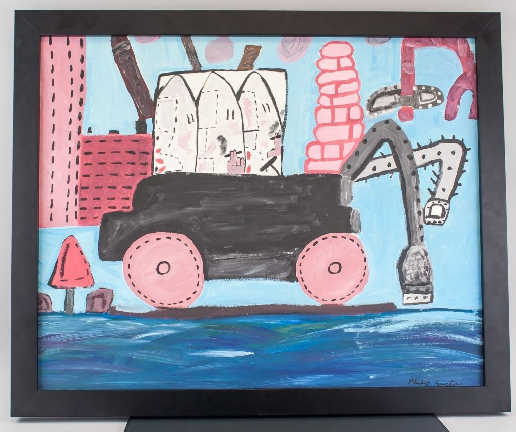 Oil on canvas painting, featuring an automobile being driven through urban downtown, American New York Expressionist School. Signed Philip Guston (1913-1980, American) on the lower right corner. 22.5 x 28 inches (57.15 x 71.12 cm). PROVENANCE: Southern Ontario estate. Private collection (Belgium)