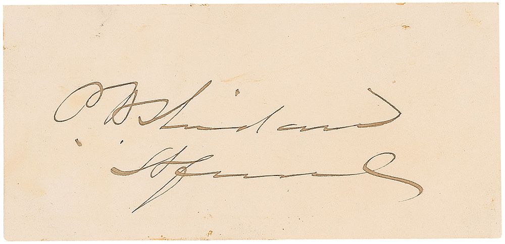Ink signature, “P. H. Sheridan, Lt. General,” on an off-white 4.5 x 2.25 card. Some scattered light toning and mounting remnants on reverse, otherwise fine condition.