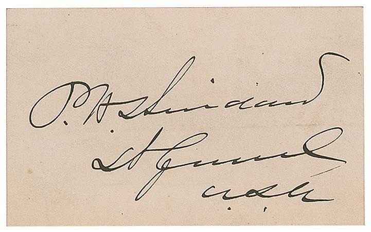 Ink signature, "P. H. Sheridan, Lt. General, U.S.A.,” on an off-white 3.5 x 2 card. In fine condition.